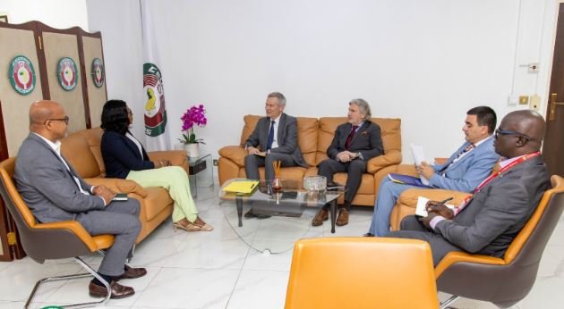 Ambassador Gautier MIGNOT whose visit, according to the statement, was to officially introduce himself to the Vice President of the ECOWAS Commission, was accompanied by the Deputy Ambassador of the EU to Nigeria and ECOWAS, Mr. Zissimos Vergos, and the Acting Head of Cooperation of the EU Delegation to Nigeria and ECOWAS, Mr. Ruben Alba Aguilera.