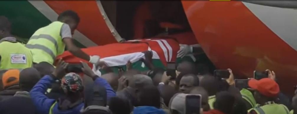 The aircraft carrying Odinga’s remains landed at Jomo Kenyatta International Airport shortly before 10 a.m.