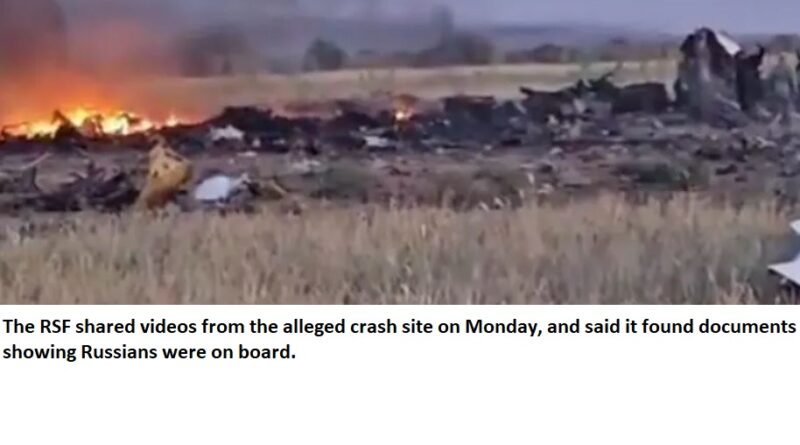 Viral footage from the alleged scene of the crash shows RSF soldiers with what appears to be Russian passports and identification cards next to the plane wreckage.