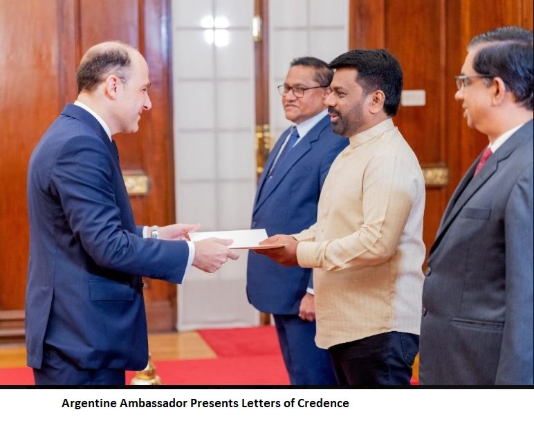 In a similar development, His Excellency, Mariano Agustin Caucino Ambassador Extraordinary and Plenipotentiary of the Argentine Republic to Sri Lanka based in New Delhi has also presented credentials to H.E. Anura Kumara Disanayaka, President of Sri Lanka on 15 May 2025 at the Presidential Secretariat, Colombo.