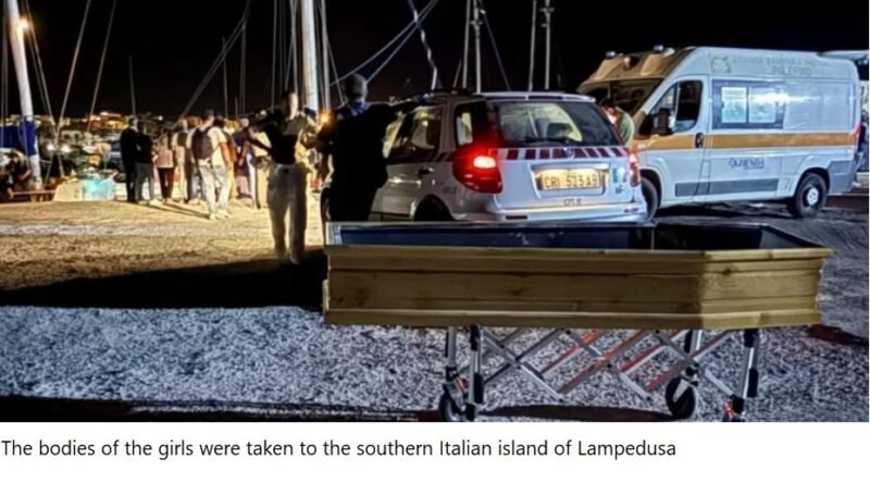 Italy’s coastguard evacuated 14 people on Saturday afternoon and took them to Lampedusa, while the rescue ship arrived later with the rest of the survivors and the bodies of the girls.